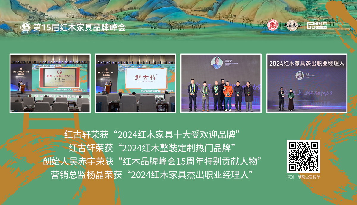 禮遇千年前的中國智慧 格物致知 修身齊家 走進紅古軒 一廿間,二十八載。28年,跨越時代進入新紀元;28年,待時乘勢,根深葉茂;28年,讓新中式成為時代。 創始人故事 1997年創立紅古軒,2002年在紅木行業提出“新中式紅木家具”。如今,紅古軒以富于藝術創造的產品與文化引領紅木家具發展... 品牌故事 品牌榮耀 品牌歷程 人物故事